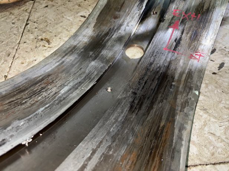 Bearing with severe damages from debris.