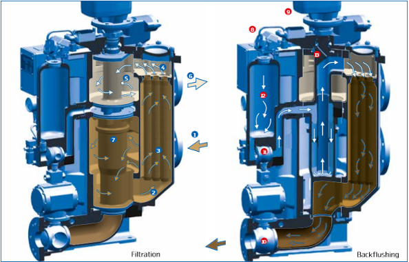Automatic backflush filters for fuel and lubricating oil cleaning have been in operation for many years and have become common in many engine installations. The filters generally consist of one or more chambers with a set of candles of fine wire mesh that the oil flows through. Larger particles get stuck on the surface while smaller particles flow through the filters and back into circulation.