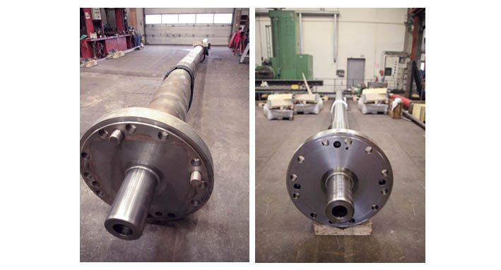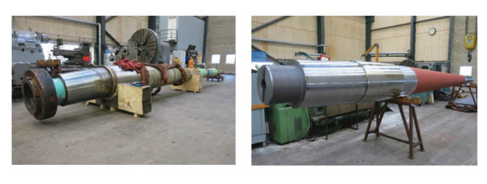 The bent propeller shaft The vessel had suffered extensive propeller shaft and rudder damage when it hit a rock off the Norwegian coast. The propeller shaft had only turned half around when it was blocked and pulled approximately one metre out of the stern tube. The vessel suffered water ingress, but was safely towed into a quay. Subsequent examination showed that the propeller shaft had suffered massive damage and was heavily bent The manufacturing of a new propeller shaft would require more than four months, Cold straightening was proposed and found to be much cheaper and faster than commissioning a new shaft. The propeller shaft was transported to the repair company in Denmark and within one week the cold straightening repairs had resulted in a 0.01mm deflection from centre line, being successfully completed to full class approval as permanent repairs without any recommendation. Later, the shaft surface was machined 1mm off and executed within the demands of class.