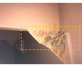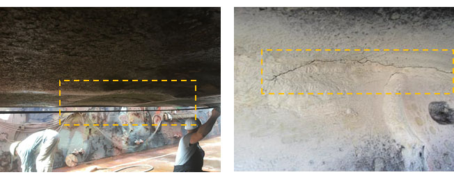 Left: Indentation on hull bottom, Right: Crack on rudder