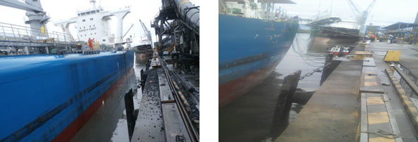 The second most important thing is to ensure that the vessel’s hull is not breached. Crew will need to frequently monitor soundings in spaces such as double bottom tanks, duct keel, cofferdams, stool spaces and cargo hold bilges. The vessel may move laterally away from the berth upon taking ground and for that reason the moorings might need extra attention. The vessel’s sudden lateral movement can also cause damage to the ship and shore equipment such as the cranes and gangways.