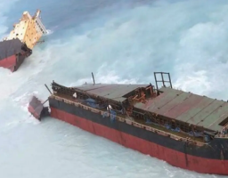 The grounded vessel broke in two in a subsequent storm.