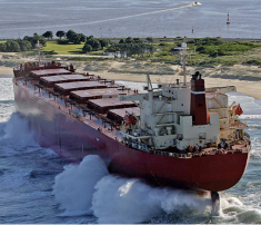 Vessel grounding after weighing anchor and attempting to put to sea in a storm