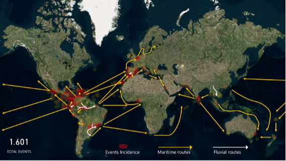 The United Nations Office on Drugs and Crime (UNODC) indicates in its 2025 World Drug Report that cocaine is mostly trafficked by sea, with nearly 80% of all seizures linked to maritime routes. Cocaine trafficking is mostly reported between South and Central American countries towards western European seaports, followed by maritime facilities in southern Europe. Central American countries also stand out as either departure points (e.g. Moin in Costa Rica) or transshipment hub such as Panama.